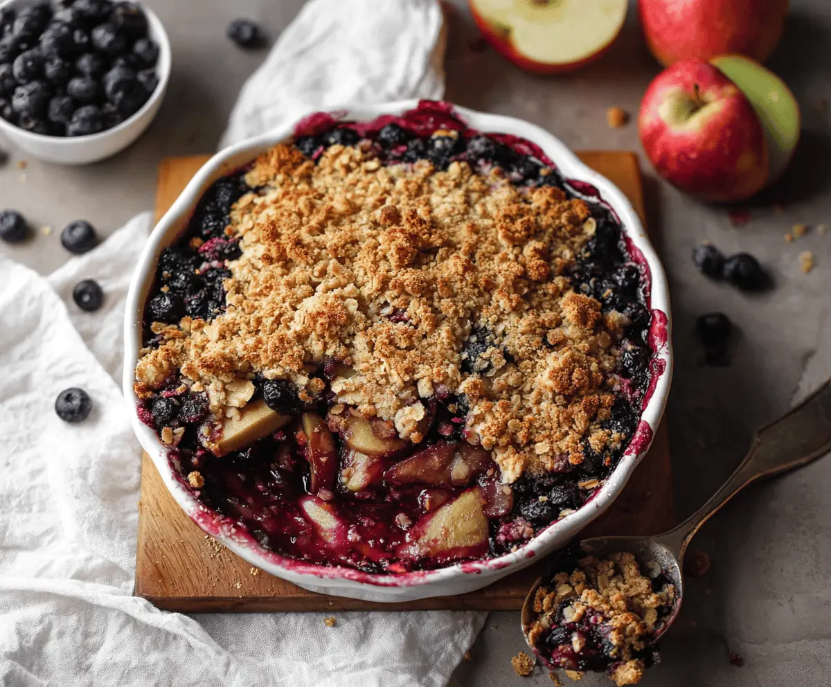 There’s nothing like the smell of this crisp baking in the oven! I love enjoying it with a scoop of vanilla ice cream—just the perfect combo for a cozy night in. 🍏🫐