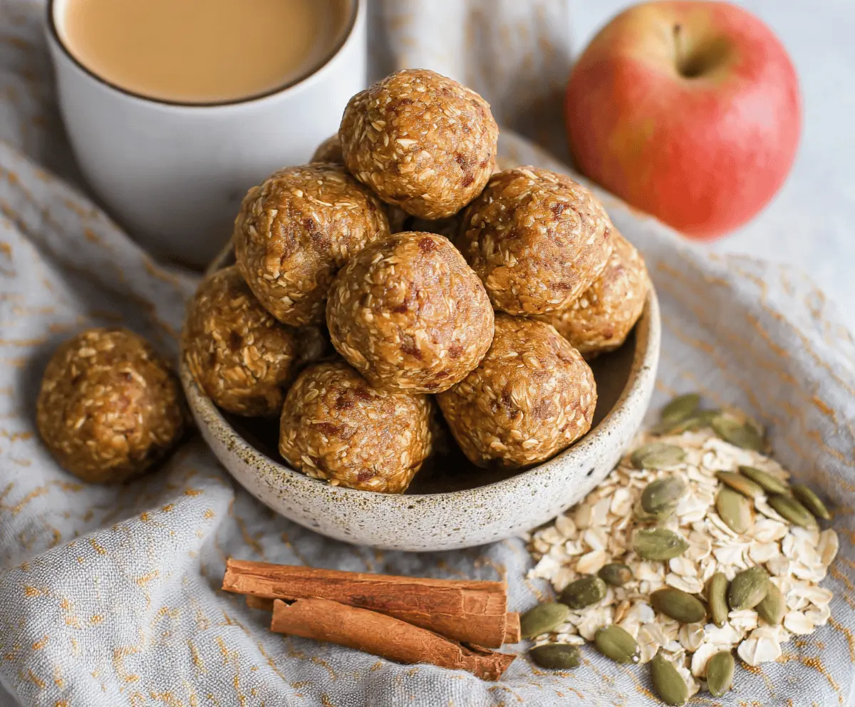 These Apple Cinnamon Pumpkin Protein Balls are a tasty snack packed with healthy goodness. Imagine the sweet taste of apples and warming cinnamon mixed with pumpkin—yummy!