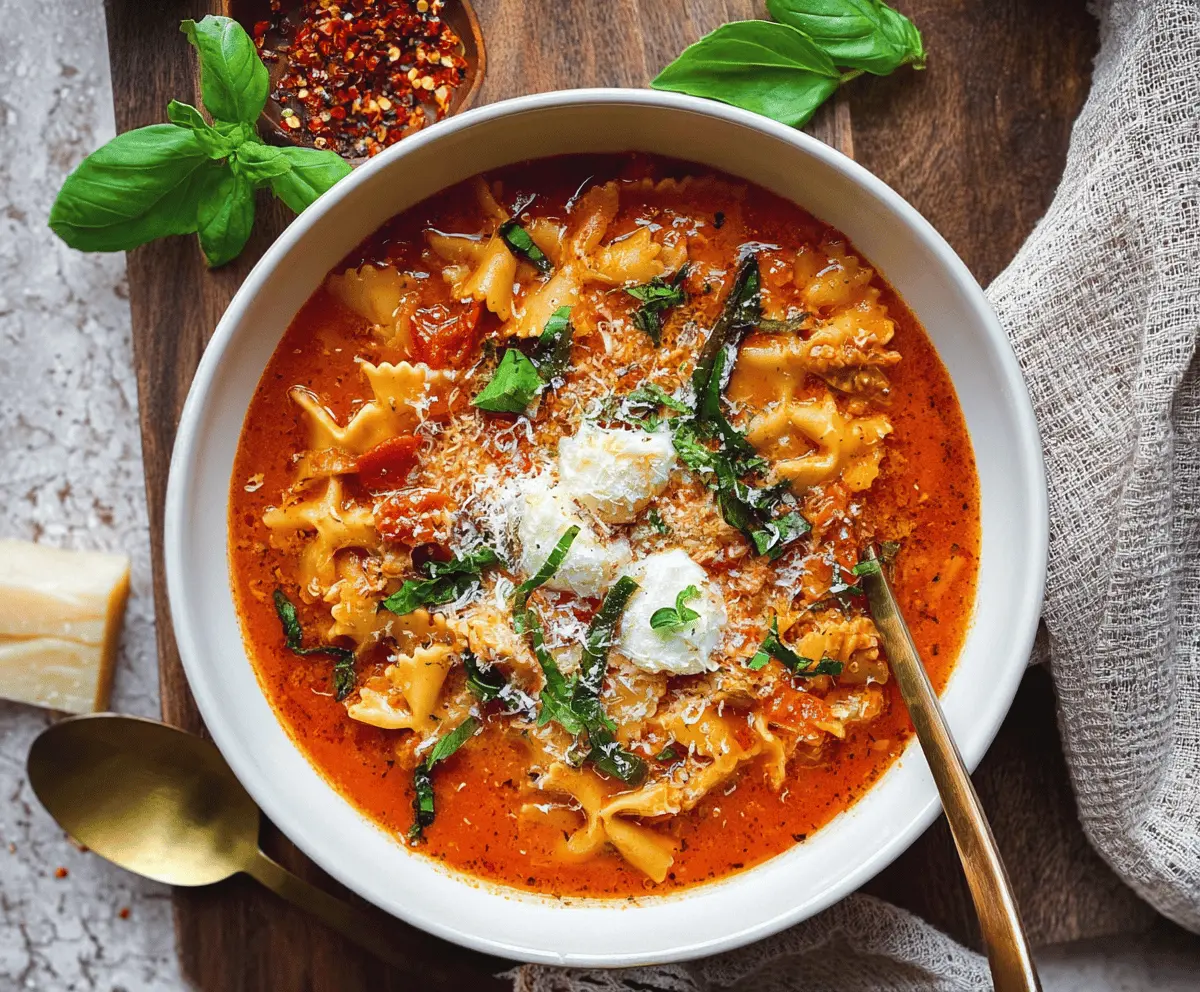 Enjoy your spicy, comforting Arrabbiata Lasagna Soup that’s packed with bold flavors and cheesy goodness! 🍲✨
