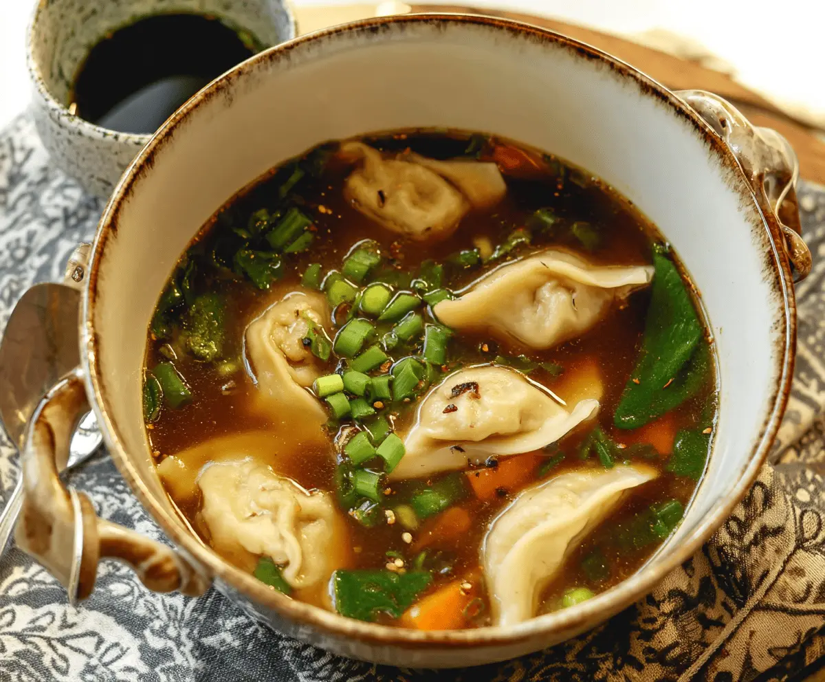 This warm and tasty potsticker soup features delicate dumplings in a flavorful broth with veggies. It’s like a cozy hug in a bowl!
