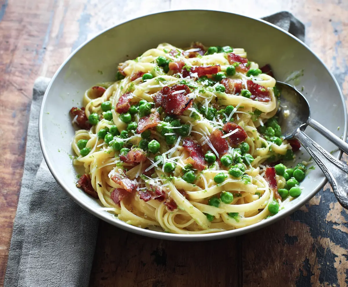 Peas: Fresh peas add a pop of color and sweetness. Frozen peas are just as good—simply add them a couple of minutes before draining the pasta.