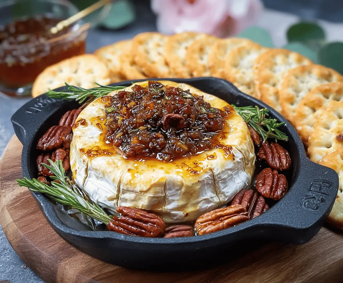 This simple yet elegant appetizer combines creamy brie, sweet fig jam, and crunchy pecans for a perfect flavor balance. Enjoy your delicious creation with friends and family!
