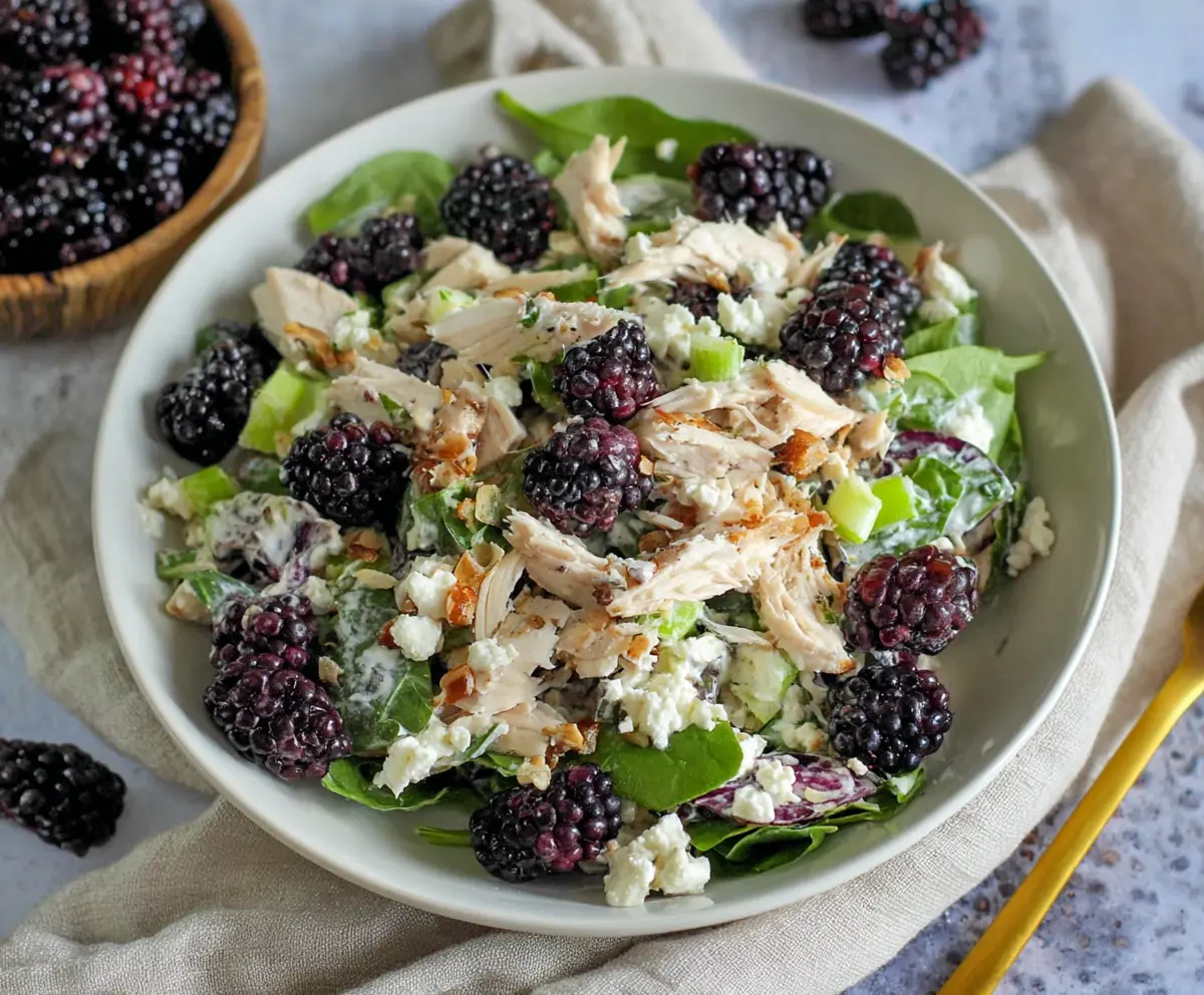 This Blackberry Cottage Cheese Chicken Salad is both tasty and refreshing. It combines juicy chicken, creamy cottage cheese, and sweet blackberries for a delightful mix of flavors.