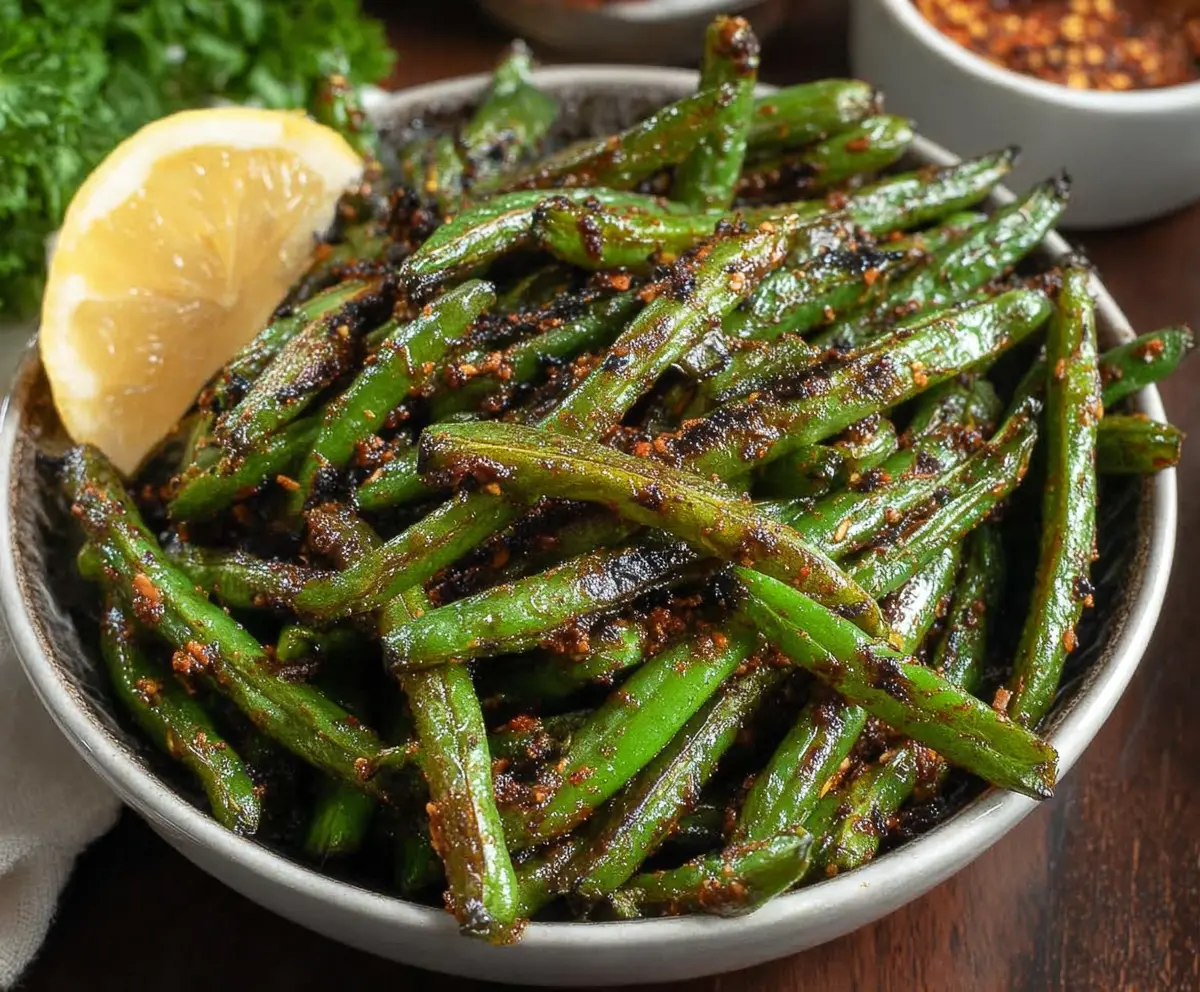 Enjoy your blackened green beans with a squeeze of lemon for brightness! It makes a lovely side dish or a tasty snack. Happy cooking!
