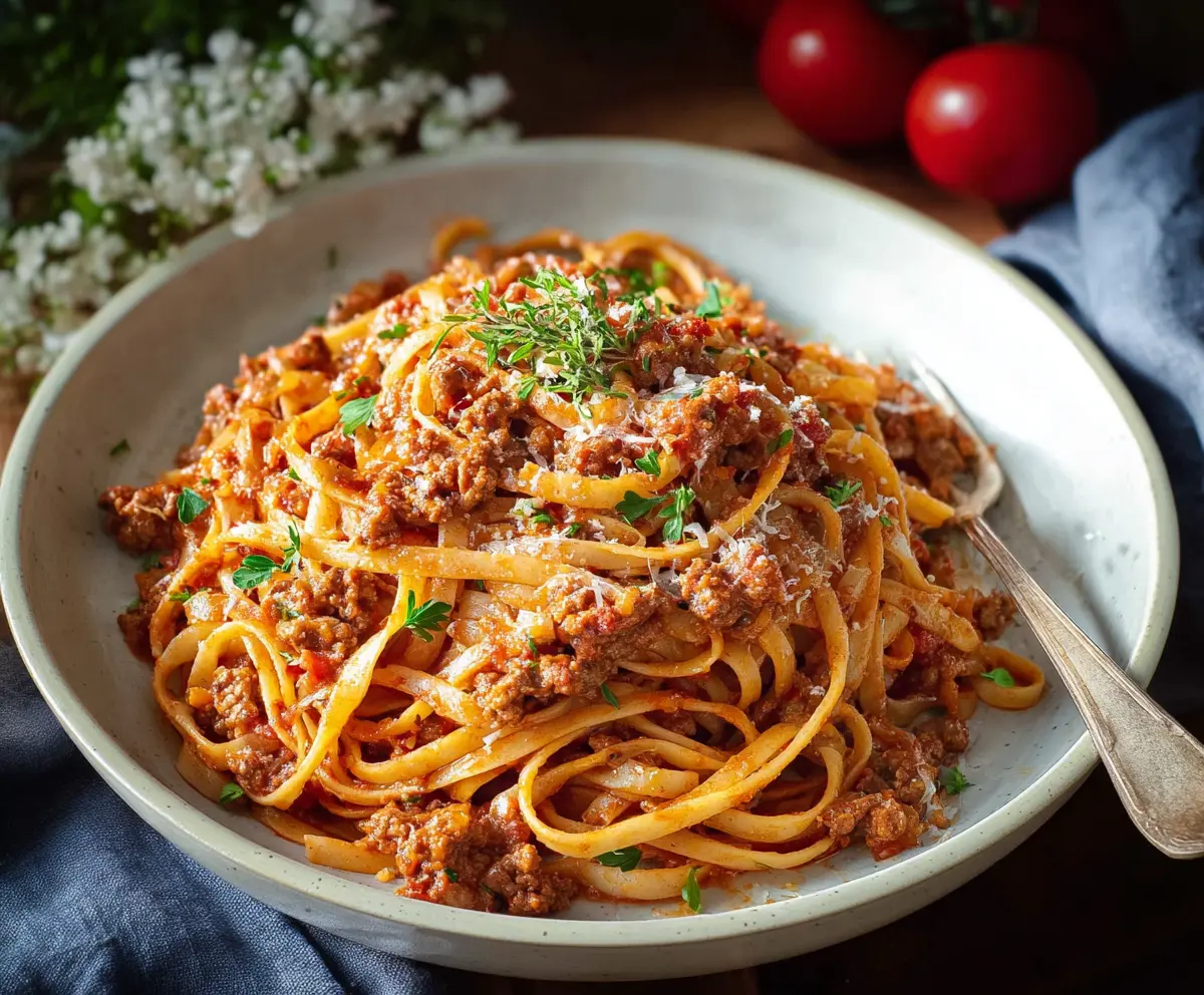 Bolognese Pasta is a hearty dish featuring rich meat sauce, perfect for cozy dinners. It’s made with ground beef, tomatoes, and herbs, creating a warm and filling experience.