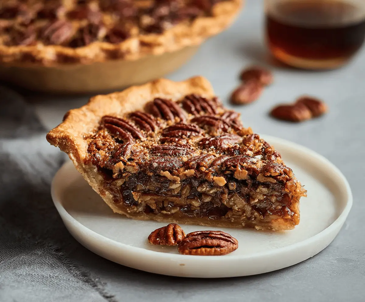 This Bourbon Pecan Pie is a tasty treat with a rich and sweet filling, packed with crunchy pecans. The hint of bourbon makes it extra special for gatherings!
