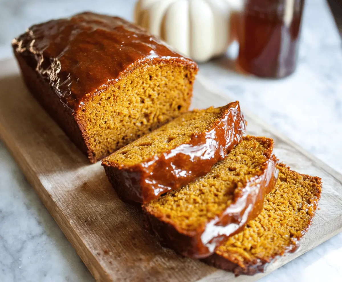 Enjoy a moist, warmly spiced pumpkin bread with a rich nutty flavor and a glossy sweet maple glaze that makes it irresistible!