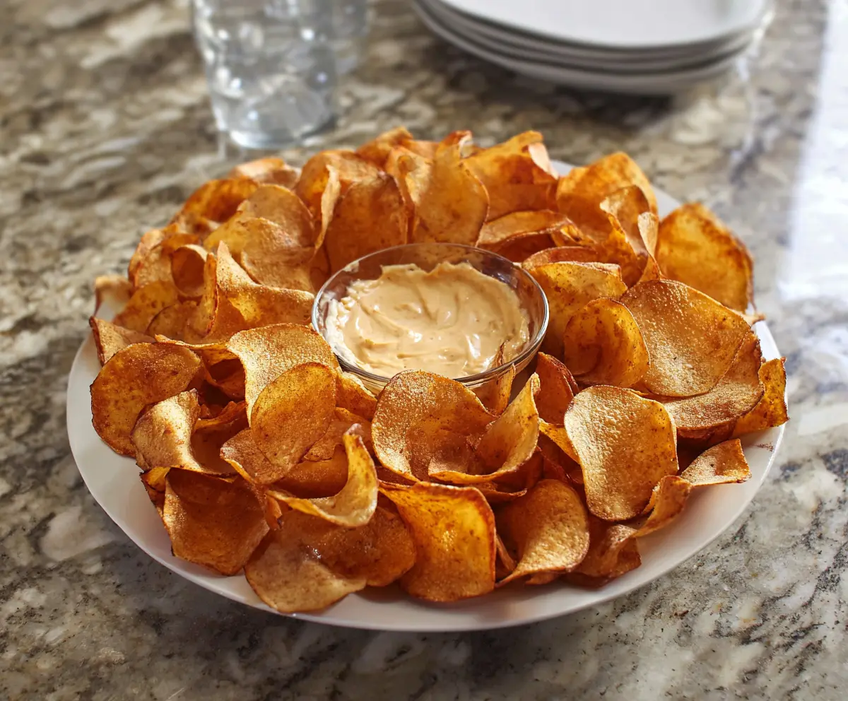 Buffalo chips are crispy potato slices that pack a fun crunch. When paired with a spicy Louisiana hot dip, this dish becomes a perfect appetizer for parties!