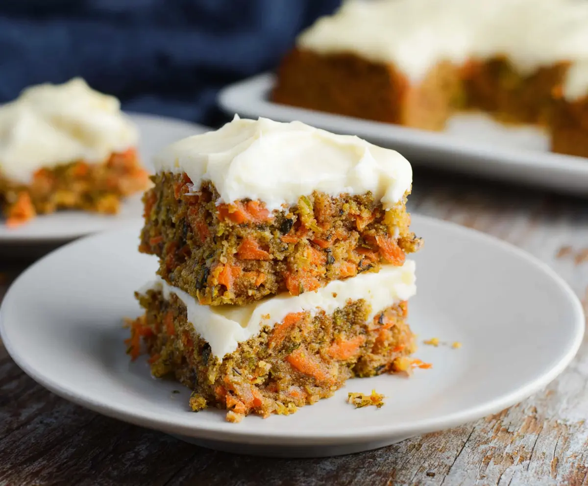 Enjoy your moist, flavorful Carrot and Zucchini Bars with a refreshing tangy frosting!