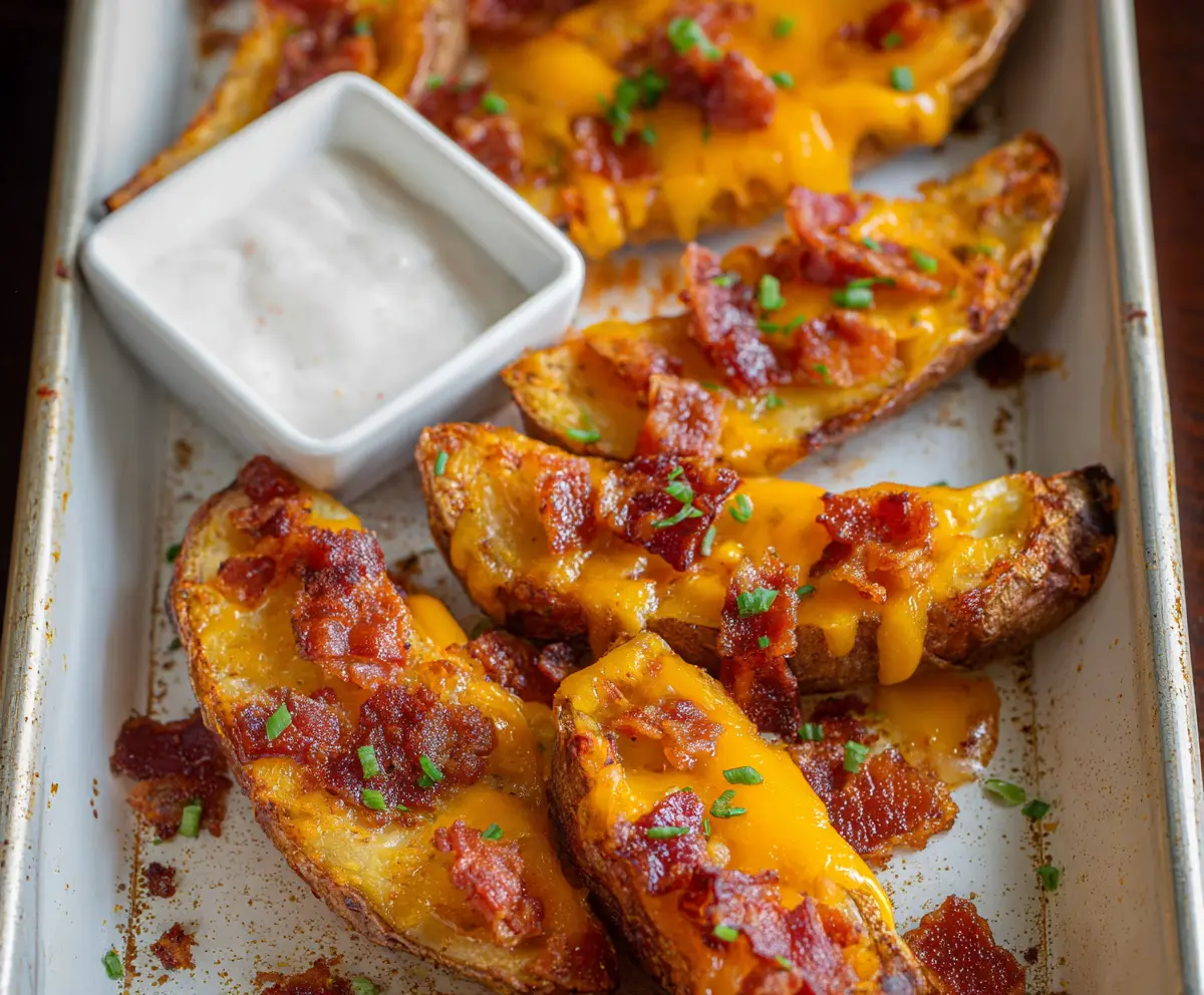 Enjoy your cheddar bacon potato wedges as a hearty appetizer or side dish!