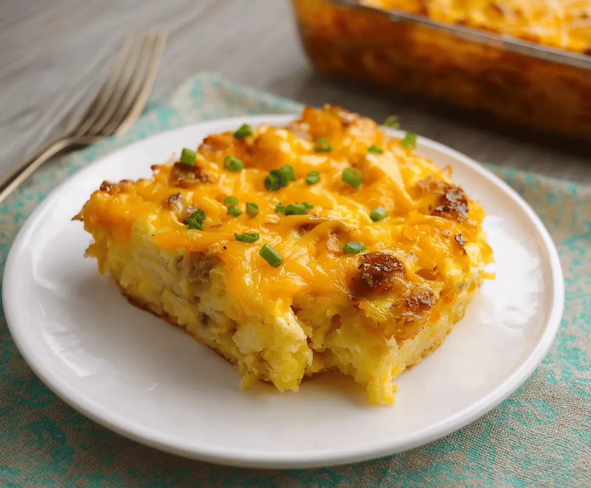 Cut the casserole into squares and serve warm. Enjoy every cheesy, fluffy bite of your delicious hashbrown egg casserole!