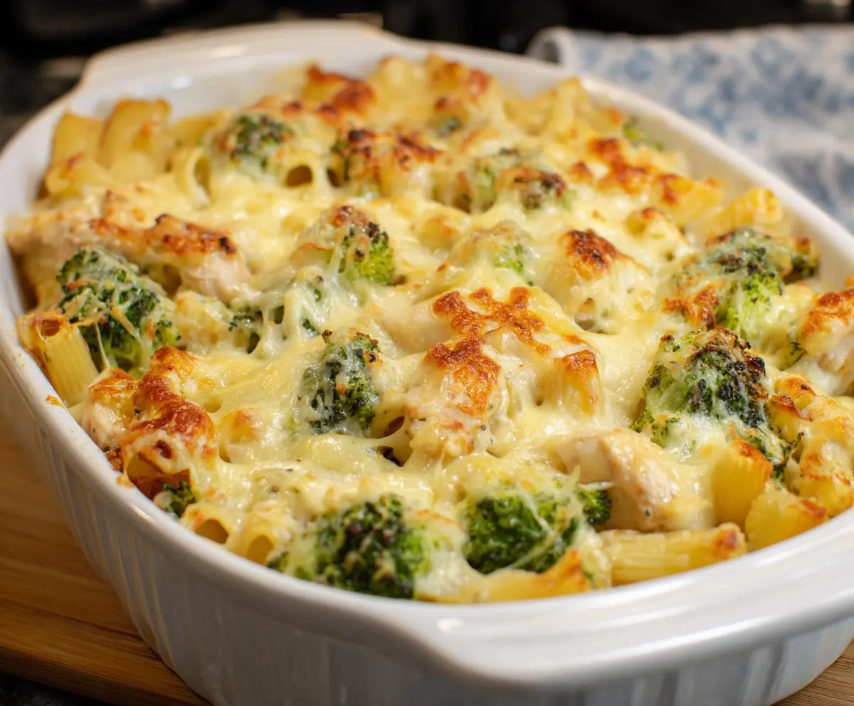 This Chicken and Broccoli Pasta Bake is a cozy dish that’s perfect for family dinners. It combines tender chicken, bright broccoli, and pasta all smothered in creamy cheese sauce!
