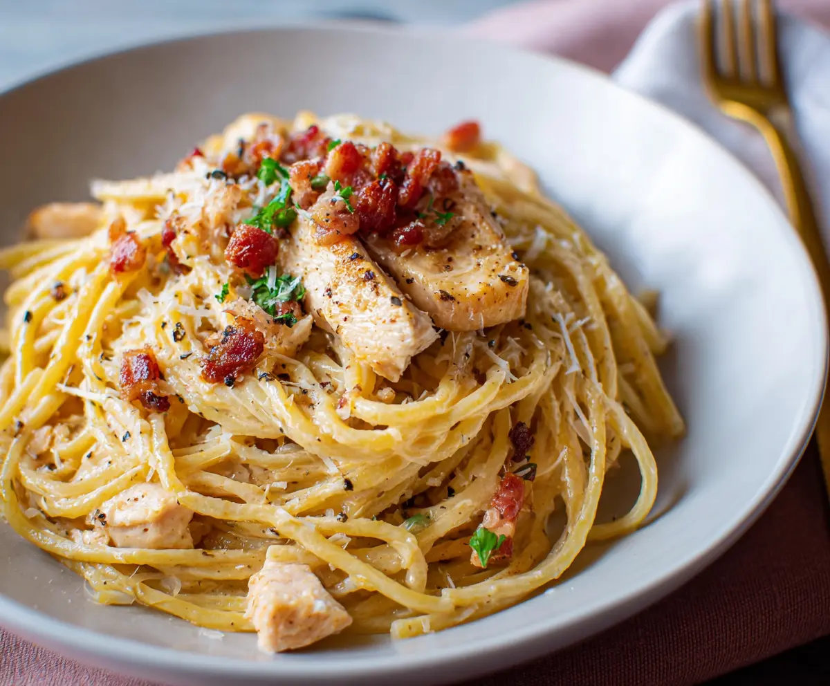 This Chicken Carbonara Pasta is creamy, comforting, and packed with flavor! With tender chicken, crispy bacon, and a rich sauce, it’s a dish that makes any day feel special.
