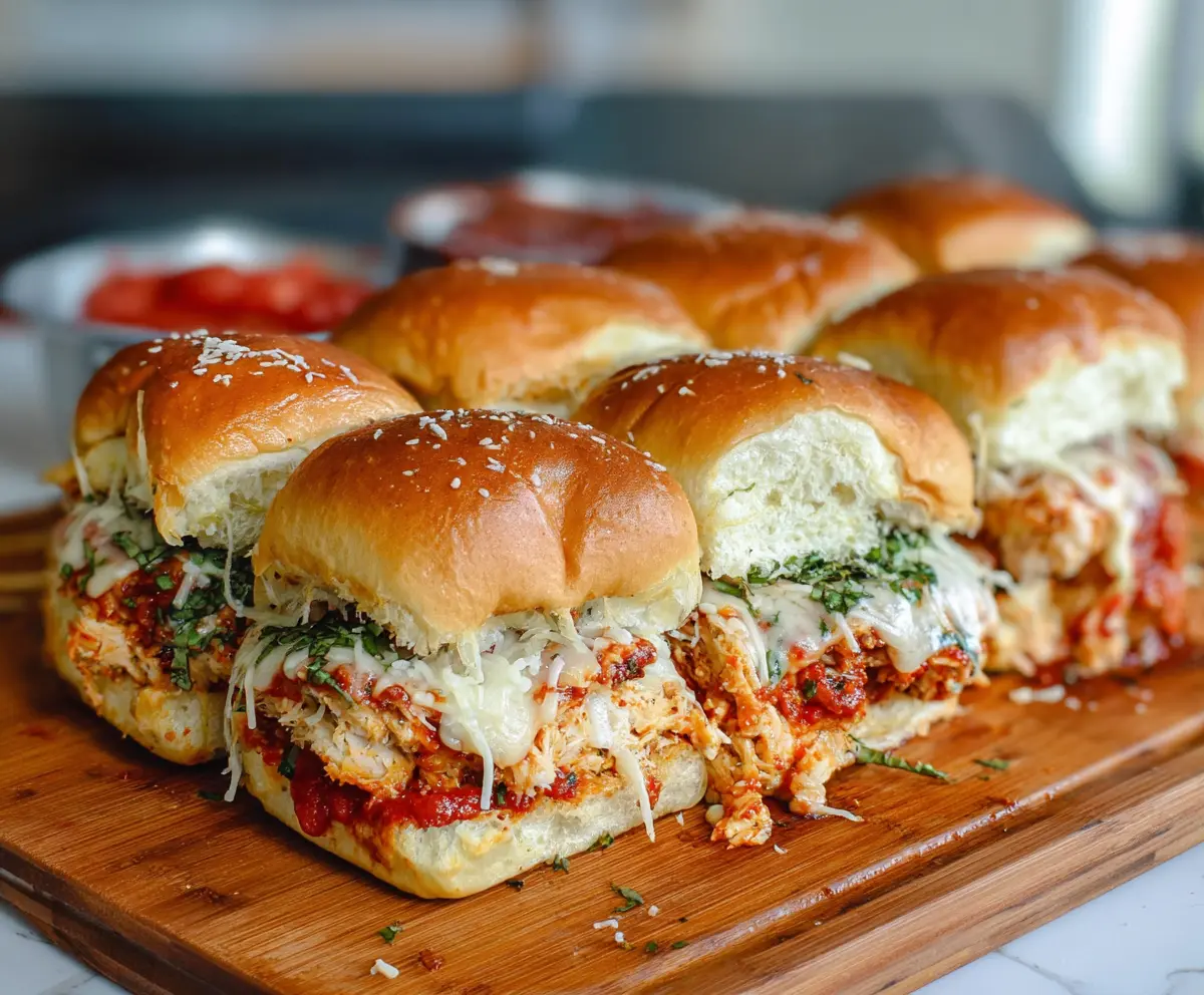 These Chicken Parm Sliders are mini sandwiches filled with juicy chicken, melted cheese, and tasty marinara sauce. They’re perfect for a quick snack or a game day feast!