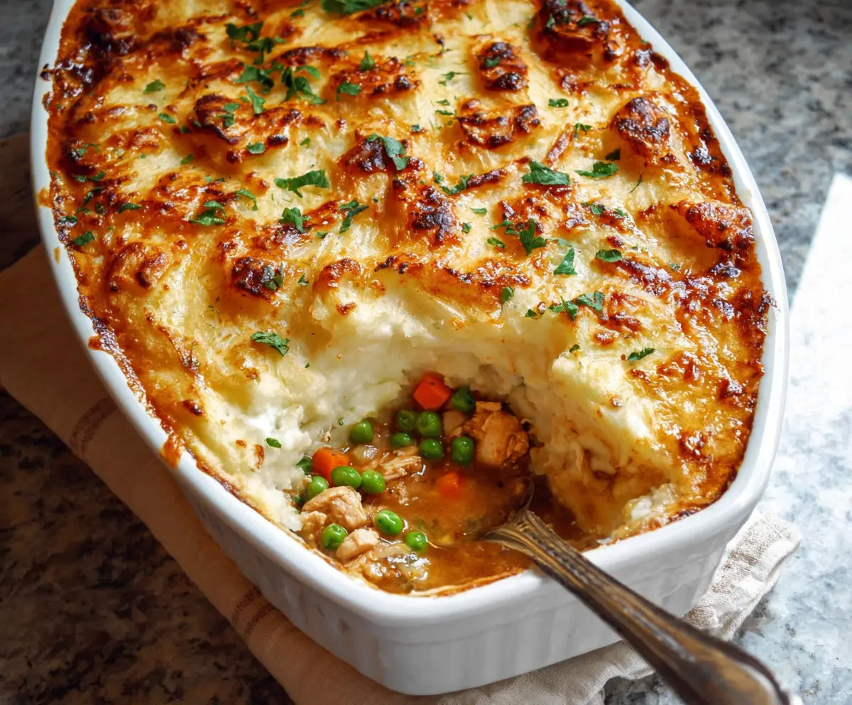 This Chicken Shepherd’s Pie is a cozy dish filled with tender chicken and veggies, all topped with creamy mashed potatoes. It’s simple, hearty, and makes a tasty meal!