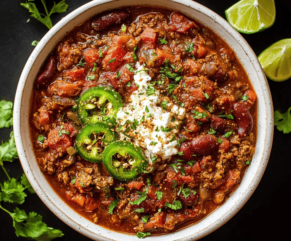 This chili is a big hug in a bowl. I love topping mine with cheese and sour cream—it just makes it better, right? Plus, it’s easy to whip up and great for leftovers!