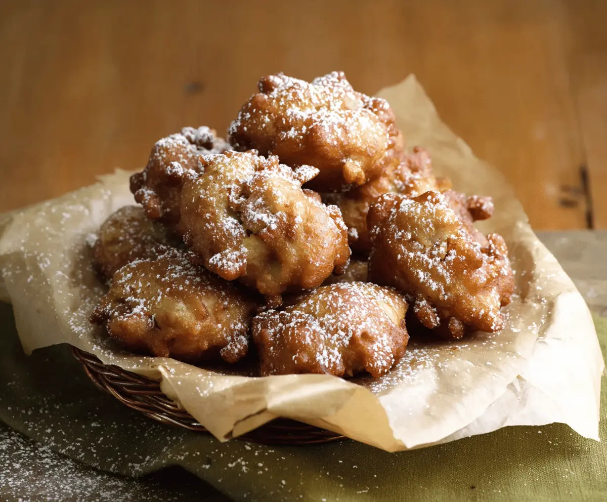 While they are still warm, dust the fritters generously with powdered sugar. This will add the perfect touch of sweetness!