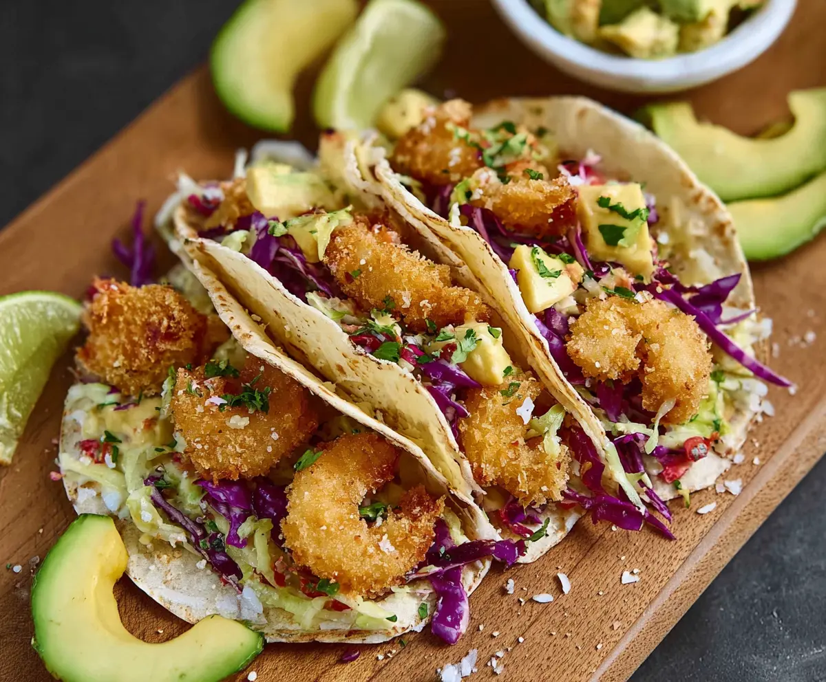 These Coconut Shrimp Tacos are a tasty treat! Juicy shrimp coated in crispy coconut flakes give a sweet crunch. Wrapped in soft tortillas, it’s a fun twist on taco night!
