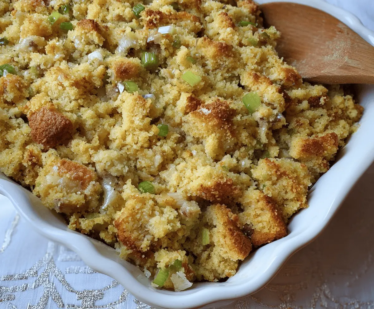 This cornbread dressing is a tasty mix of fluffy cornbread, veggies, and savory herbs. It’s perfect for a cozy family meal or holiday feast!