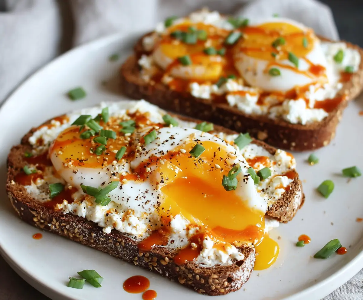 This Cottage Cheese Egg and Sriracha Protein Toast is a protein-packed delight! It features creamy cottage cheese, a perfectly cooked egg, and a spicy kick from Sriracha on crispy toast.
