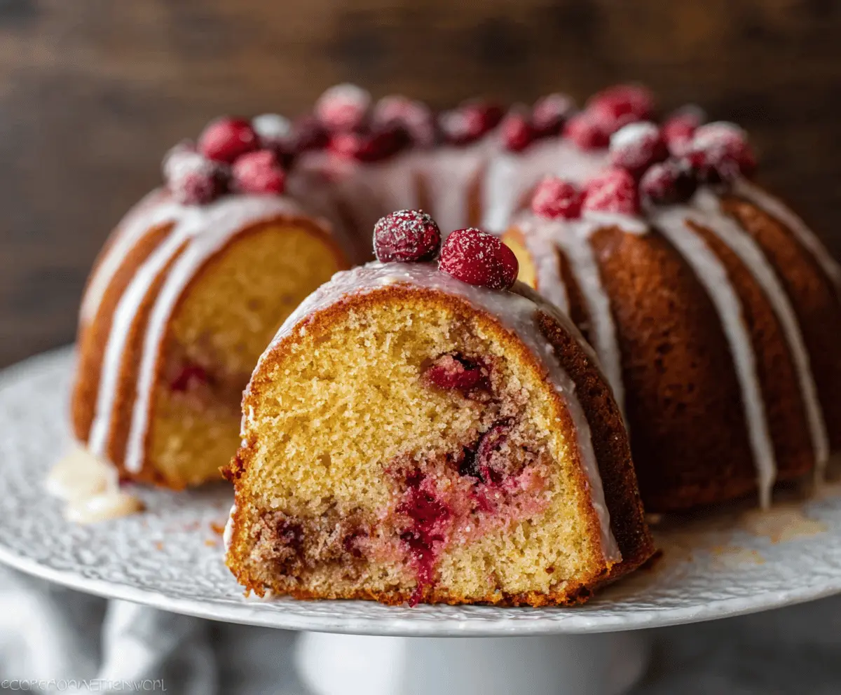 This cake is not only moist but also bursting with tart cranberry flavor, accompanied by a sweet glaze—perfect for any occasion! Enjoy every slice!