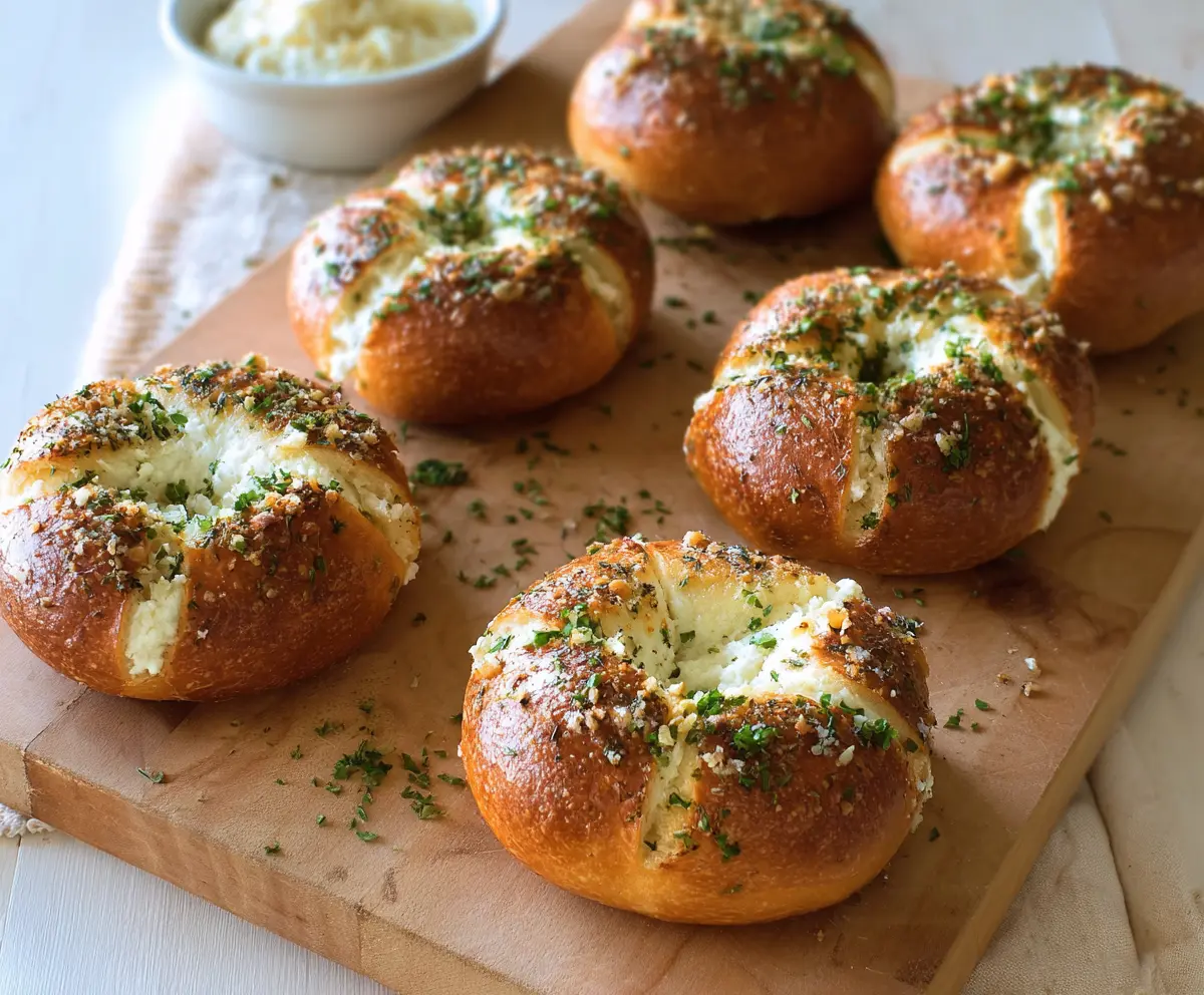 Enjoy your delightful cream cheese stuffed garlic bagels fresh from the oven!