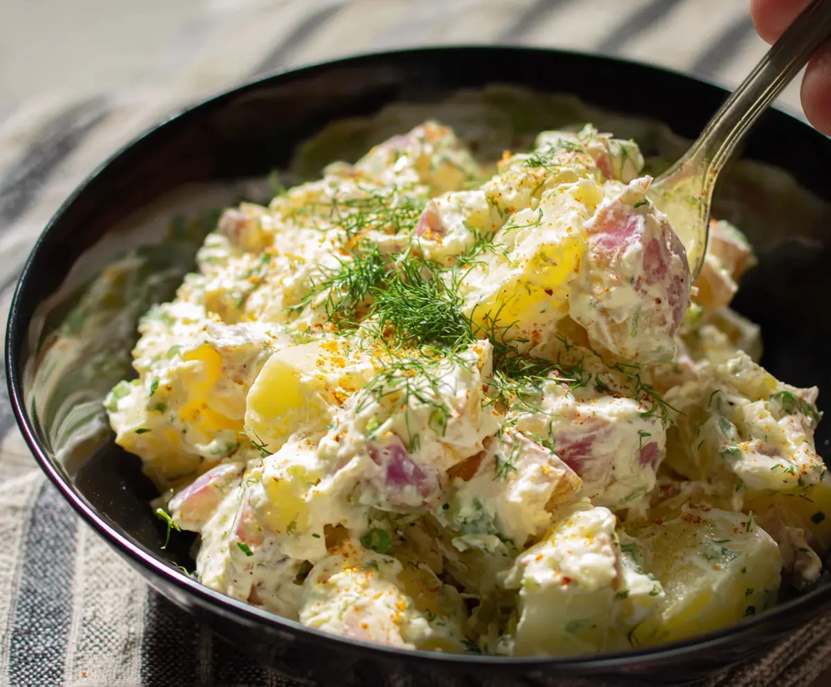 Mayonnaise: Traditional creamy potato salad uses mayonnaise for richness. If you’re looking for a healthier alternative, Greek yogurt works well too. It provides a similar creaminess with added protein.