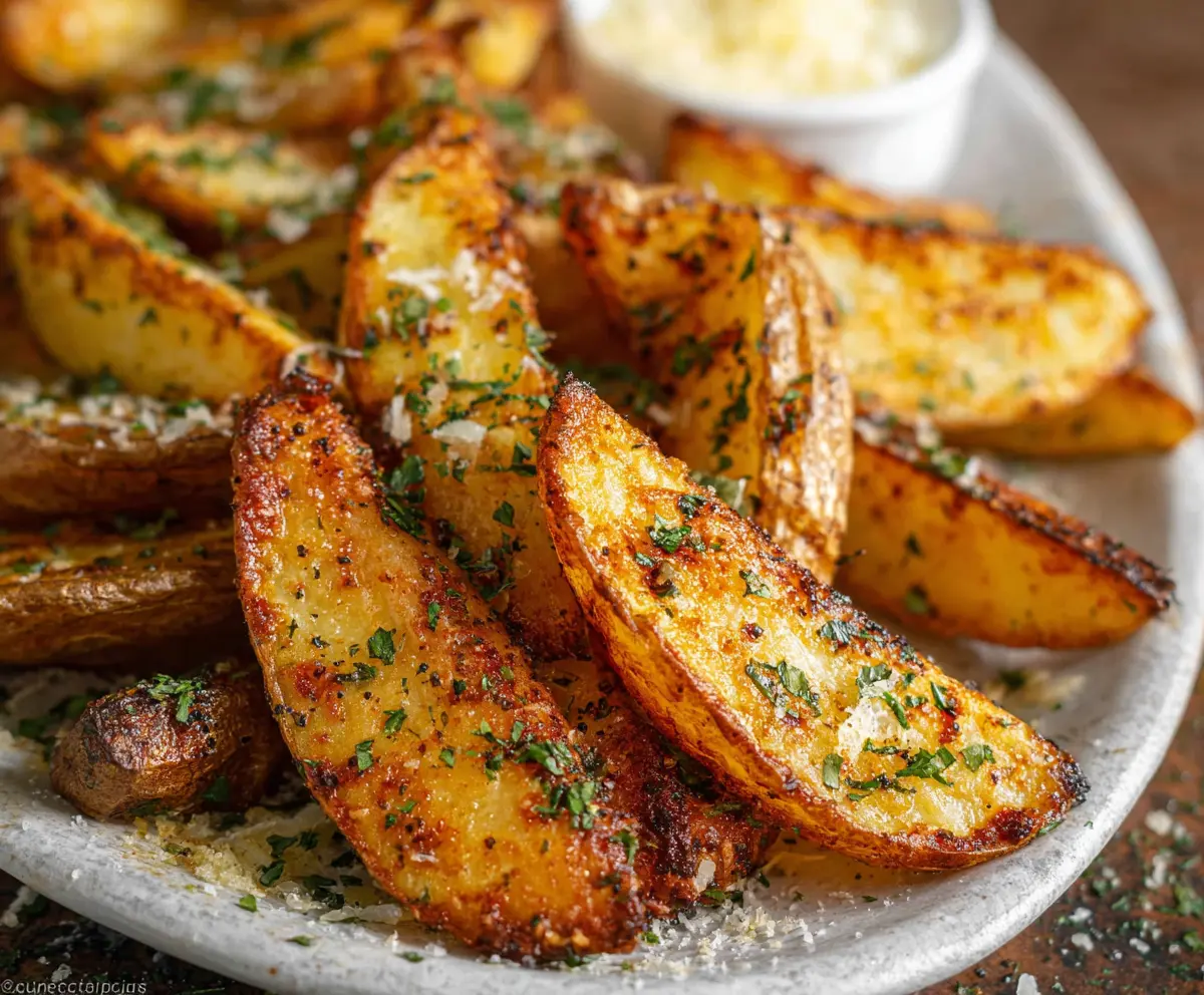 Once baked, remove the wedges from the oven and sprinkle the grated Parmesan cheese over the hot potato wedges while they’re still warm. Gently toss to coat them in cheesy goodness!