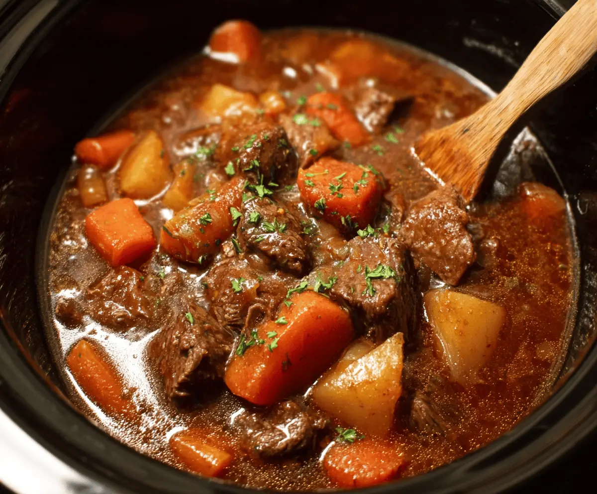 I love how the beef gets so soft while the veggies add a nice crunch. It’s perfect for a chilly day, and I always make sure to have some crusty bread on the side for dipping. Yum! 🍞