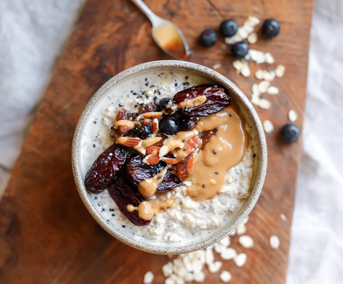 If you’d like, you can garnish with a few whole dates or sprinkle some raw oats on top for extra texture. Now, your creamy and naturally sweetened Date and Tahini Overnight Oats are ready to enjoy! Dig in and savor every bite!