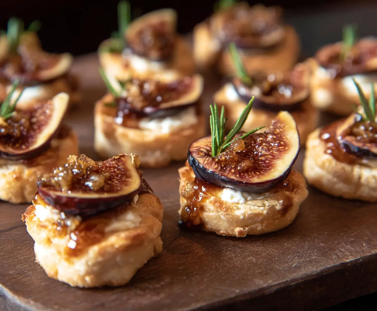 Now, crown each bite with a slice or quarter of fresh fig. The figs not only add flavor but also look beautiful!
