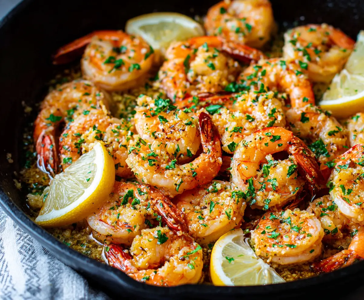 Remove the skillet from the heat. Sprinkle freshly chopped parsley over the shrimp. Serve immediately, garnished with lemon slices for an extra pop of flavor and freshness!