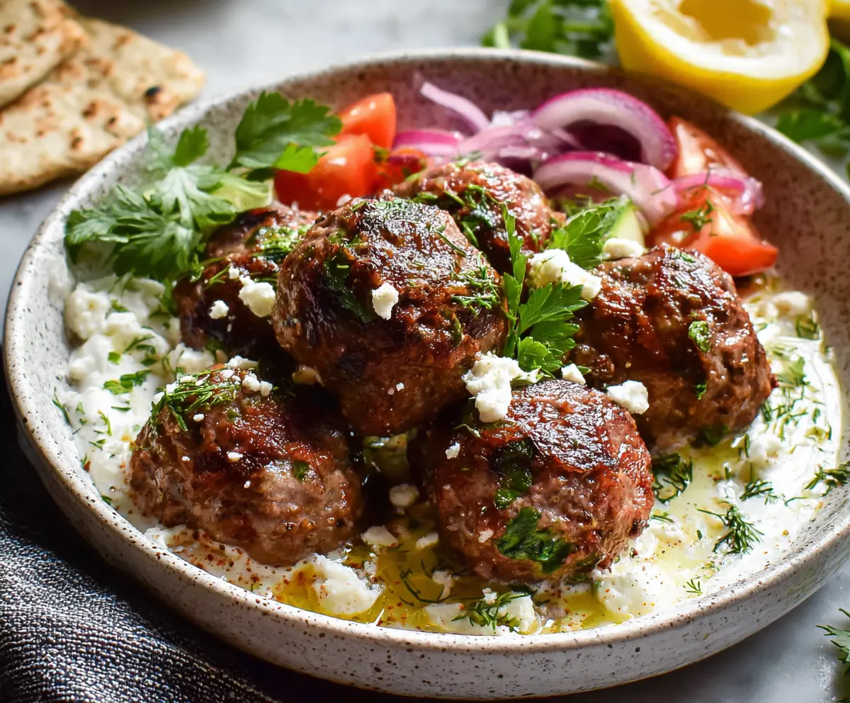 These Greek meatballs are packed with flavor and made from ground meat mixed with herbs like oregano and mint. They make a tasty snack or main dish!