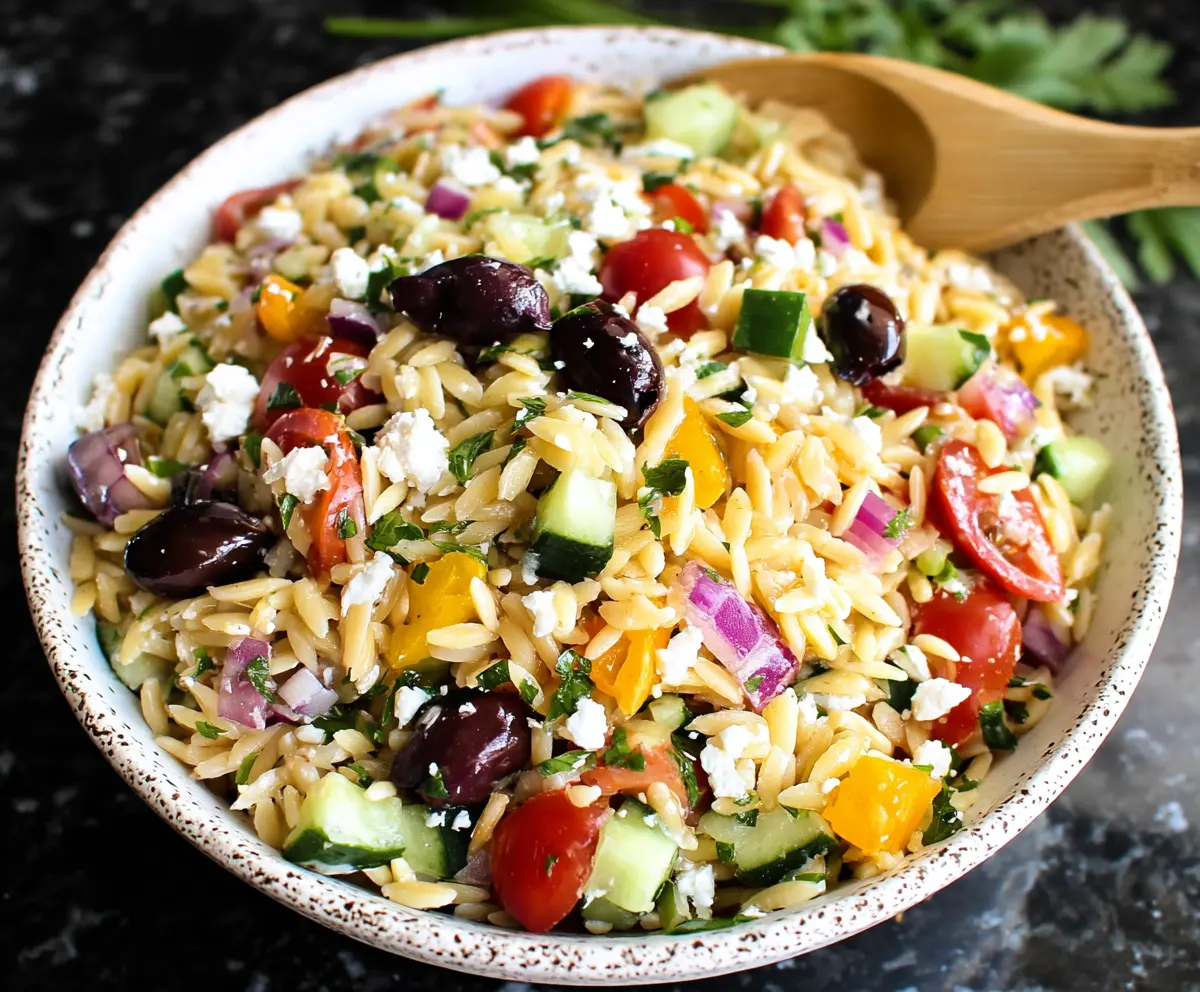 This Greek Orzo Salad is a bright and tasty dish that combines orzo pasta with fresh veggies like cucumbers, tomatoes, and bell peppers. Topped with tangy feta cheese, it’s a crowd-pleaser!