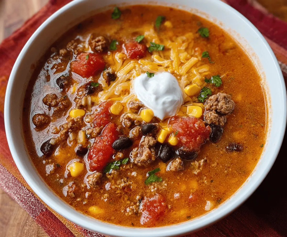 I love serving it with tortilla chips on top. It’s like a fiesta in a bowl! Plus, it’s super easy to make—just toss everything in one pot and let it simmer. Yum! 🌮