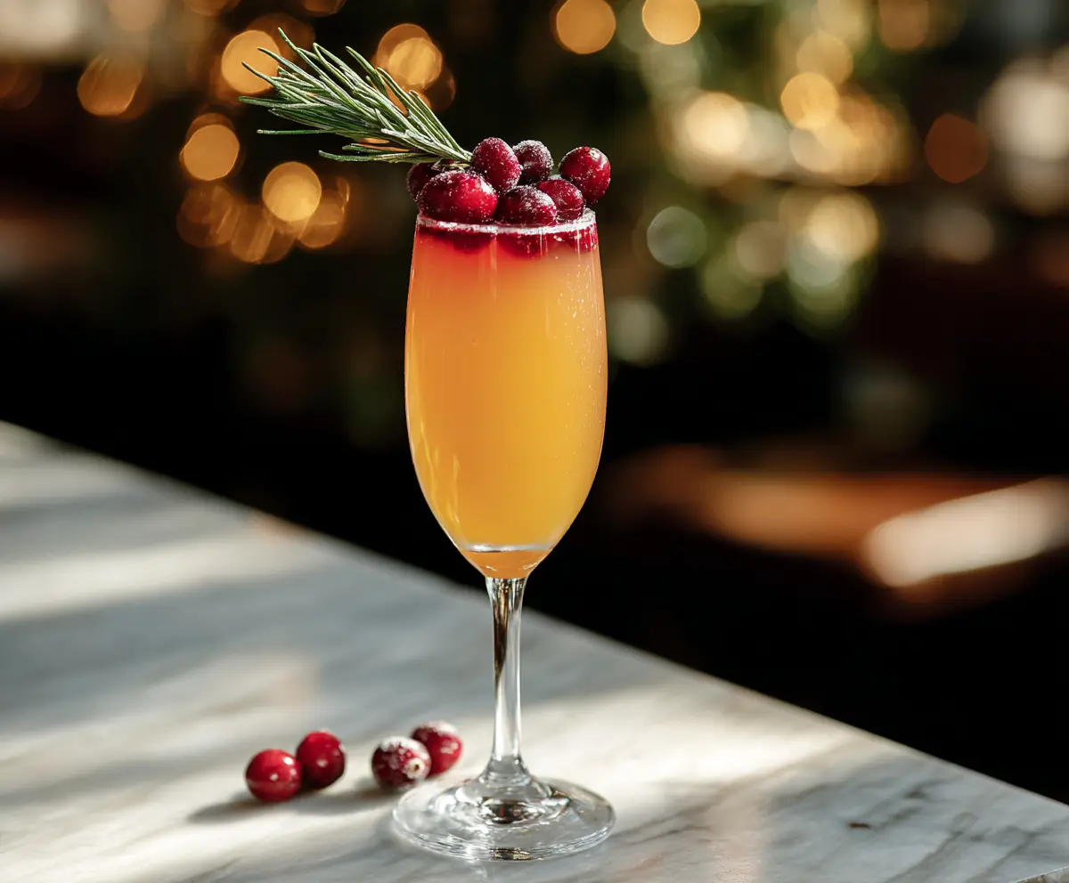 This Holly Jolly Mimosa is a festive drink perfect for the holidays! It’s a sparkling mix of bubbly champagne and sweet cranberry juice, giving it a cheerful red color.
