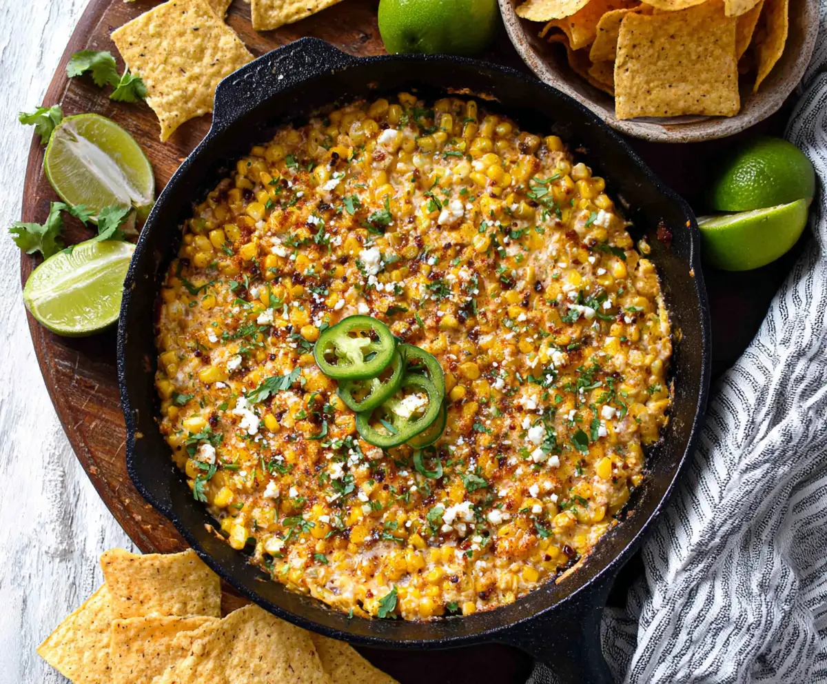 This Mexican Street Corn Skillet Dip is a creamy and cheesy delight! It’s filled with sweet corn, spicy peppers, and topped with zesty lime and cilantro—perfect for sharing!