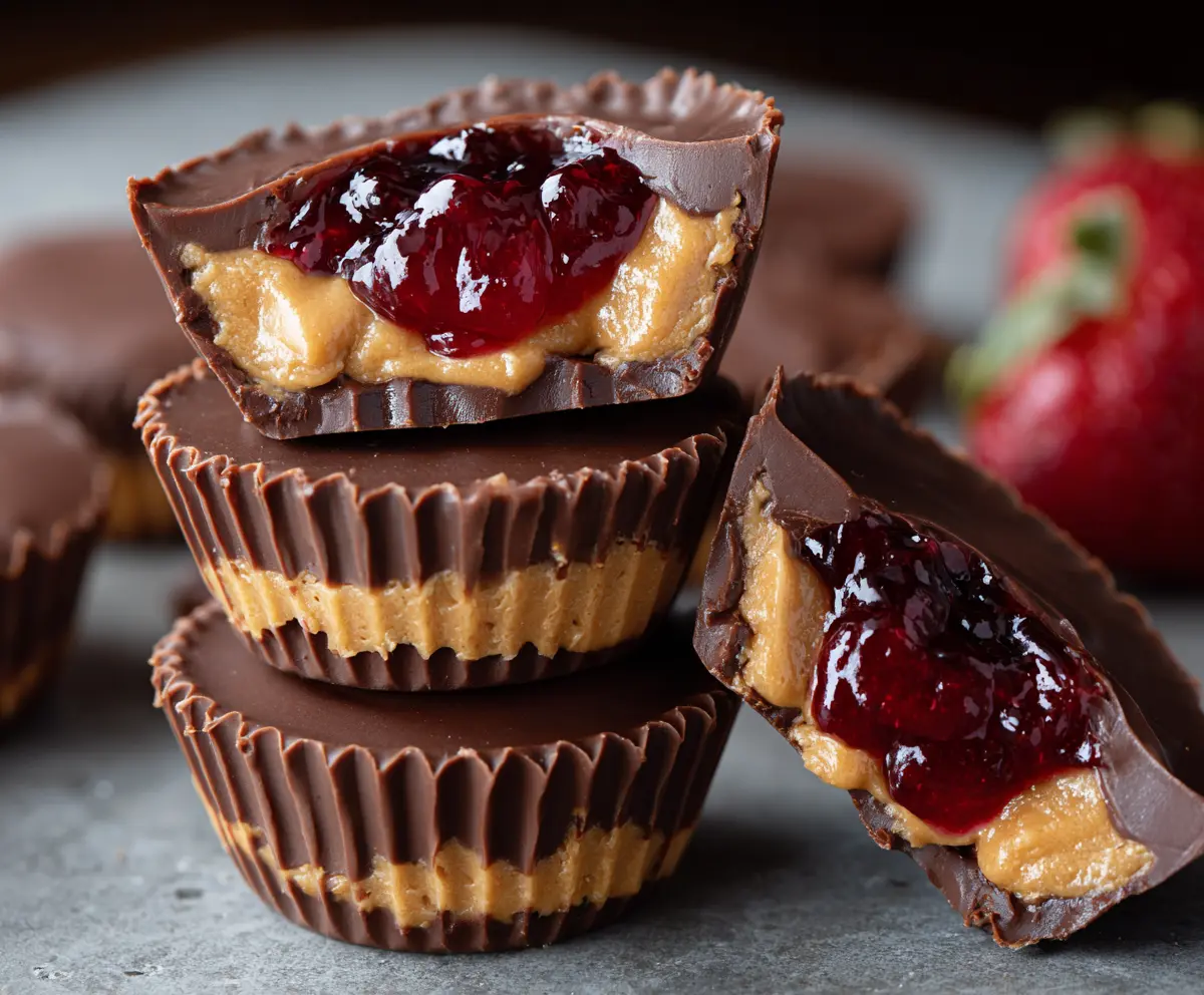These Peanut Butter and Jelly Cups are a fun treat that combines creamy peanut butter and sweet jelly in a tasty cup. Perfect for a snack or dessert!