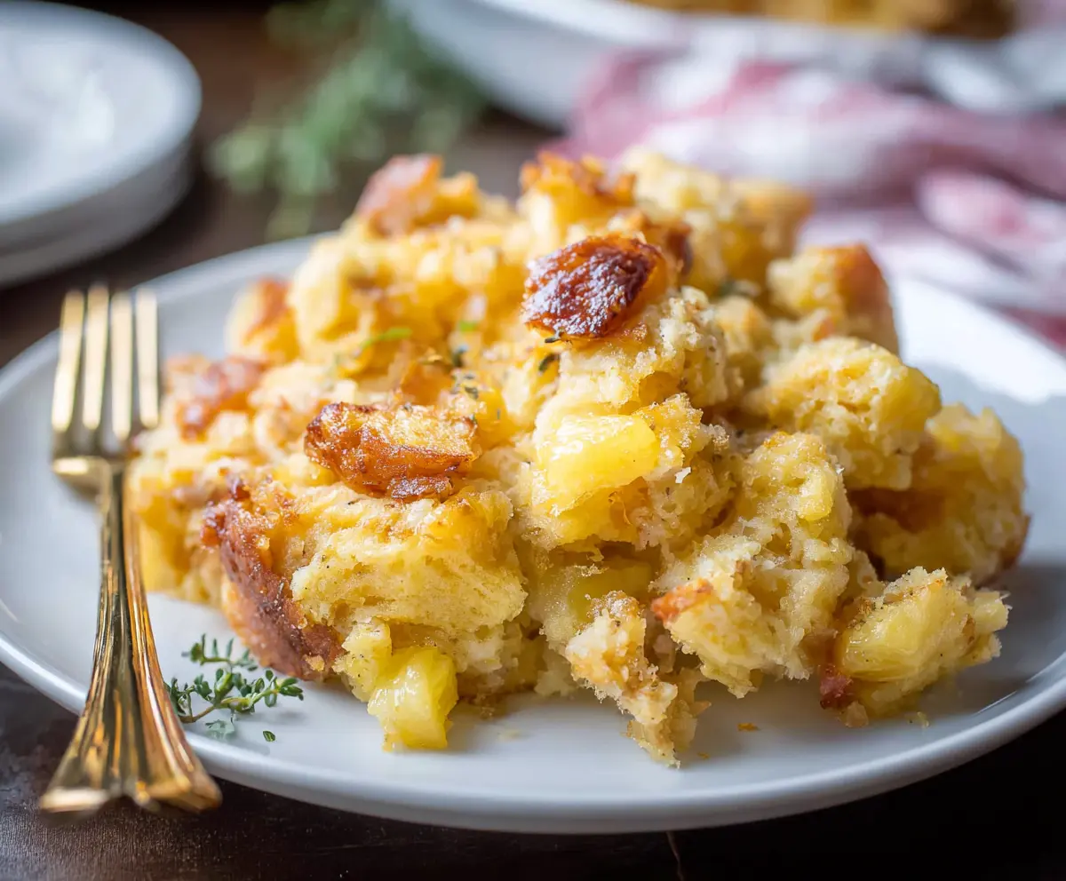 Pineapple stuffing is a sweet and tangy dish that’s perfect for adding a fun twist to your meals. Made with tender bread, juicy pineapple, and a hint of cinnamon, it’s bursting with flavor!
