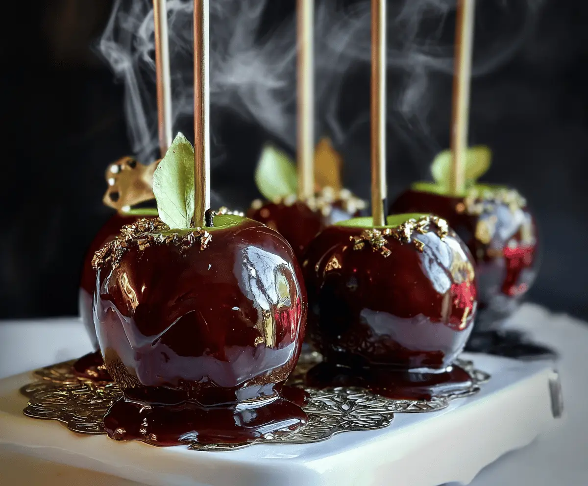 If you’d like, chill the apples briefly for a firmer candy shell before serving. Present them on a platter for a fun and spooky treat! Perfect for Halloween parties or any eerie occasion!