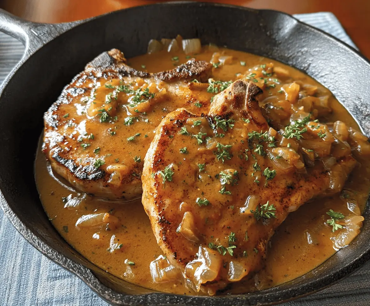 These juicy pork chops topped with rich onion gravy are a real treat for your taste buds! They’re simple to make and perfect for a cozy dinner.