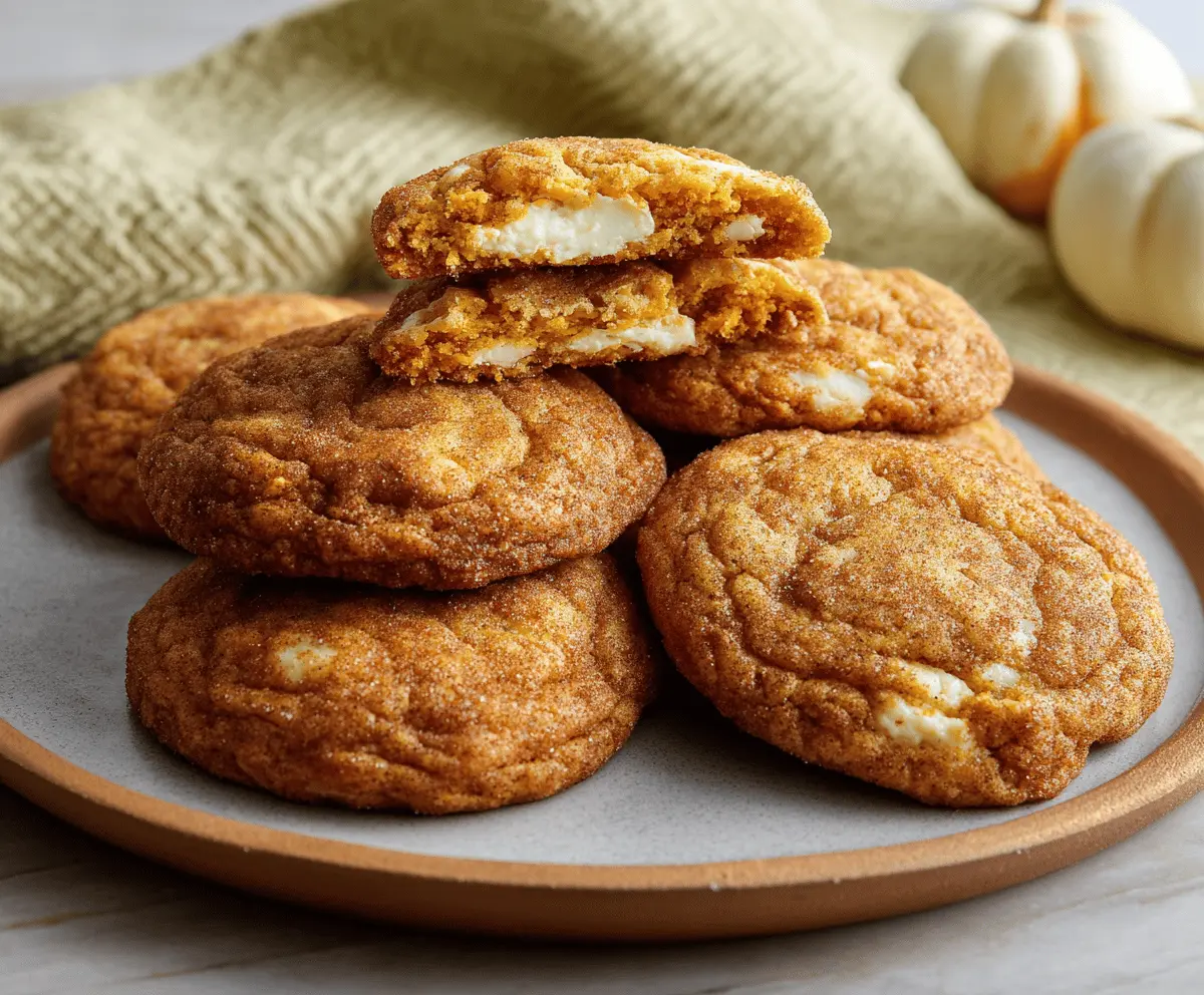 These Pumpkin Cheesecake Cookies are soft and dreamy, combining the flavors of pumpkin with a rich cream cheese center. They’re perfect for fall and taste like a hug in a cookie!