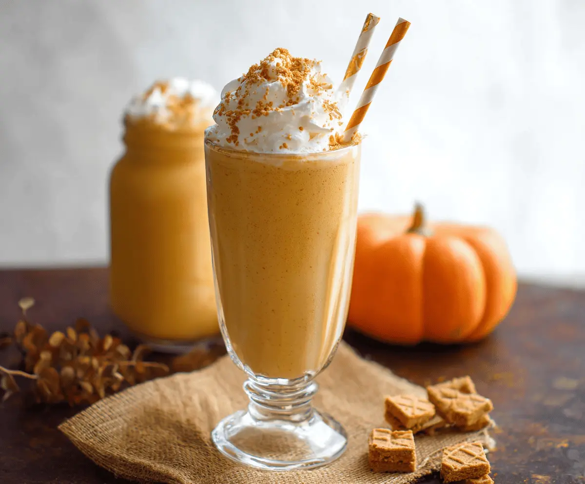 Grab some festive straws and serve your pumpkin milkshake right away. It’s the perfect treat to sip on while enjoying the cozy fall vibes!