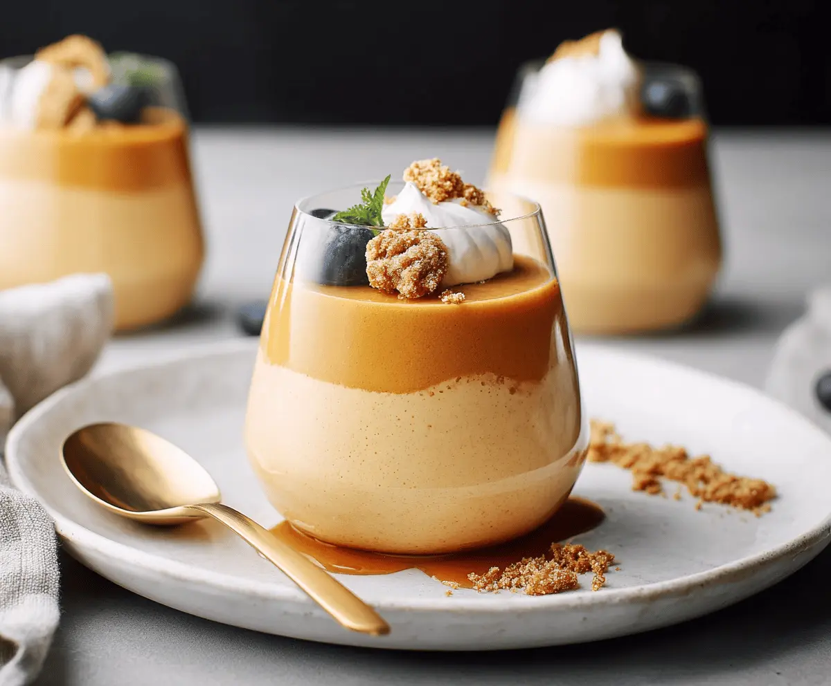 This recipe makes a smooth, airy panna cotta with warm spices and a crunchy biscuit crust—an absolute treat for any pumpkin lover!