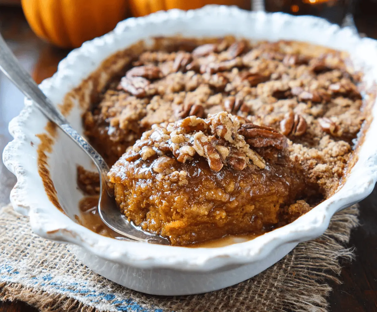 This Pumpkin Pecan Cobbler is a warm and cozy dessert that’s perfect for fall! It combines sweet pumpkin with crunchy pecans, all baked to perfection in a buttery crust.