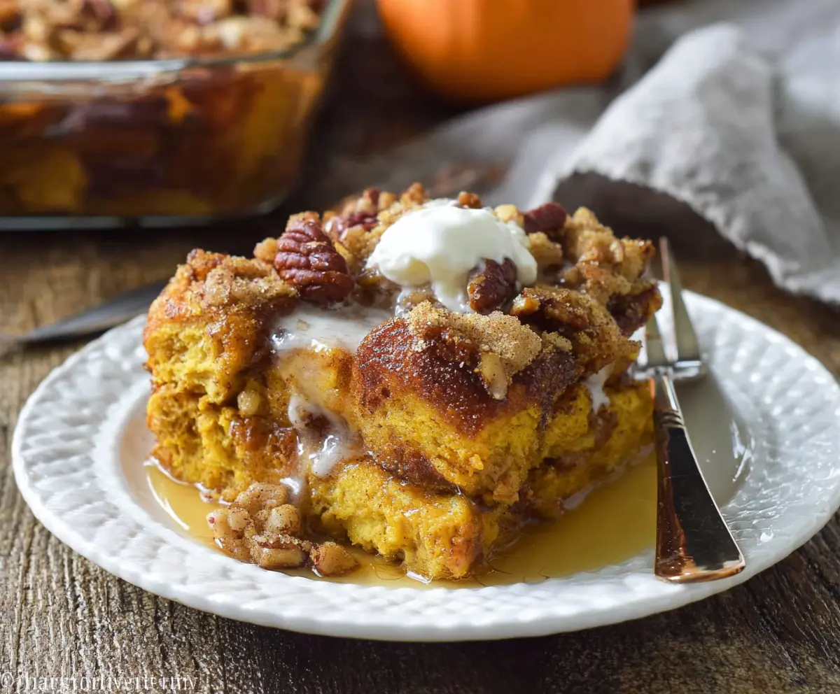 Enjoy your delicious Pumpkin Spice French Toast Casserole, perfect for cozy mornings with family or friends! 🥰
