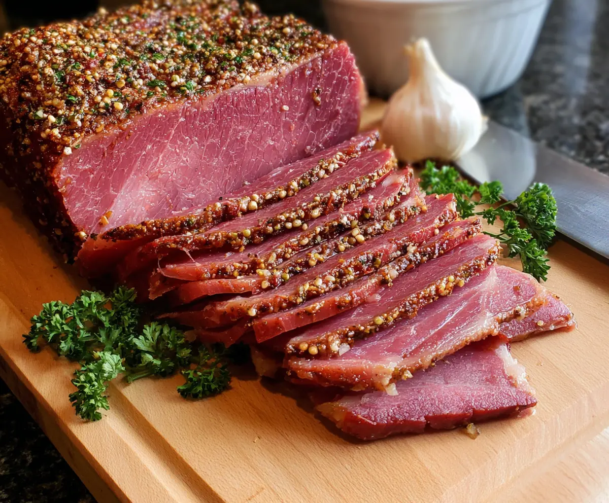 Before serving, sprinkle the sliced corned beef with chopped fresh parsley for a touch of color and flavor. Enjoy your warm, flavorful roasted corned beef!