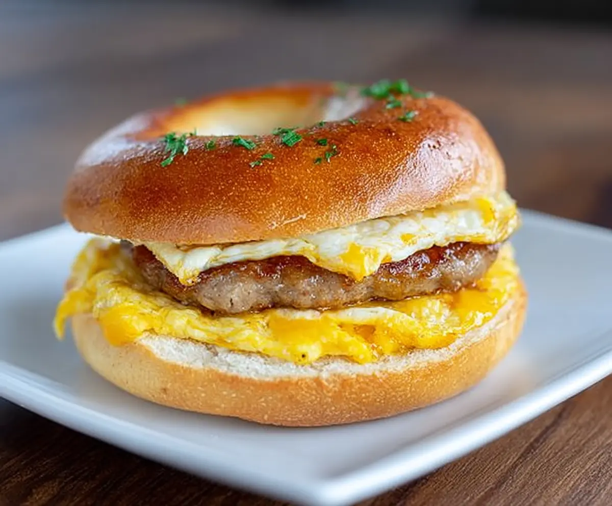 This warm and tasty Sausage Egg Breakfast Bagel is the perfect way to start your day! With a fluffy bagel, a juicy sausage patty, and a soft egg, it’s a breakfast dream!