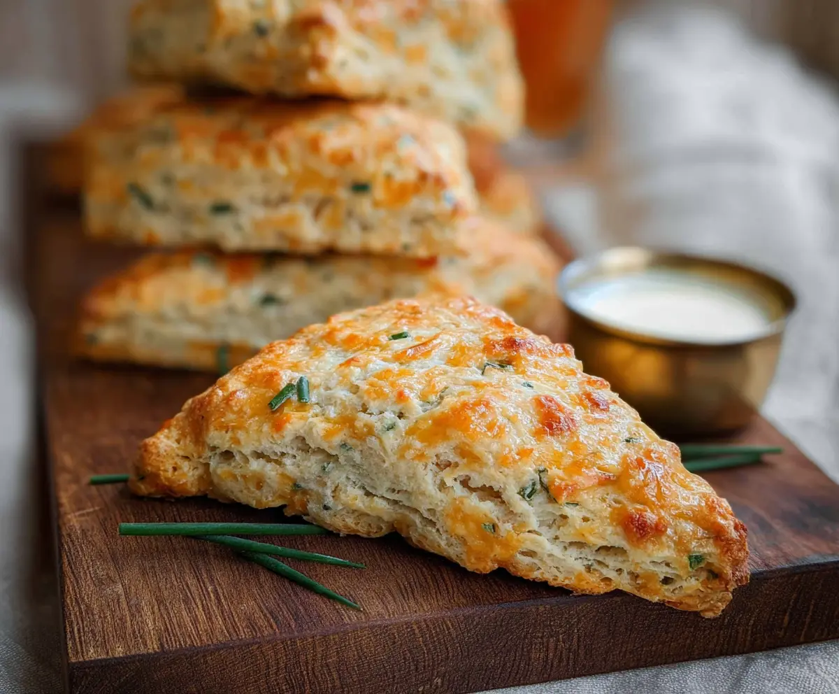 Enjoy your flavorful and flaky Sharp Cheddar and Chive Sourdough Scones!