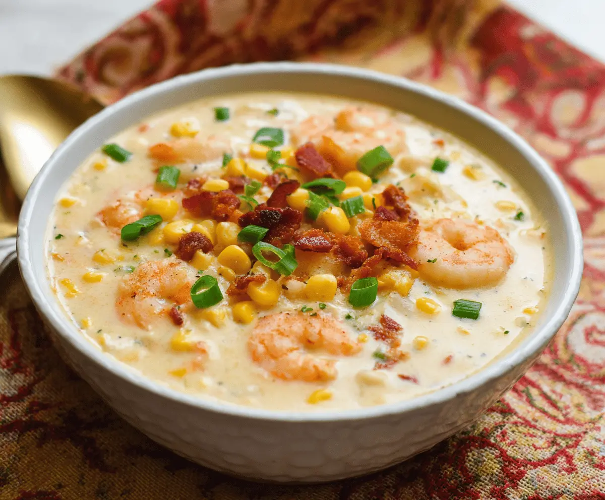 This creamy shrimp and corn chowder really brings together sweet corn, tender shrimp, and smoky bacon for a fulfilling and heartwarming dish. Enjoy every spoonful!